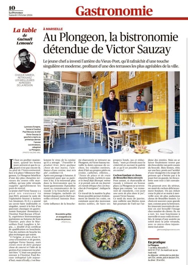 Heureux lauréat de la "Dotation Jeunes Talents Gault&Millau 2023", il ouvre en mai 2023 son restaurant Le Plongeon afin de partager sa cuisine instinctive qui s'attelle à sublimer de bons produits.