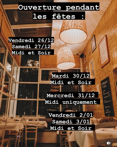 Le restaurant sera fermé pour congés du 21 au 25 décembre.
